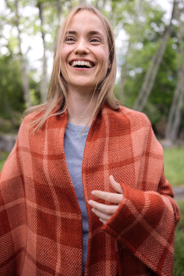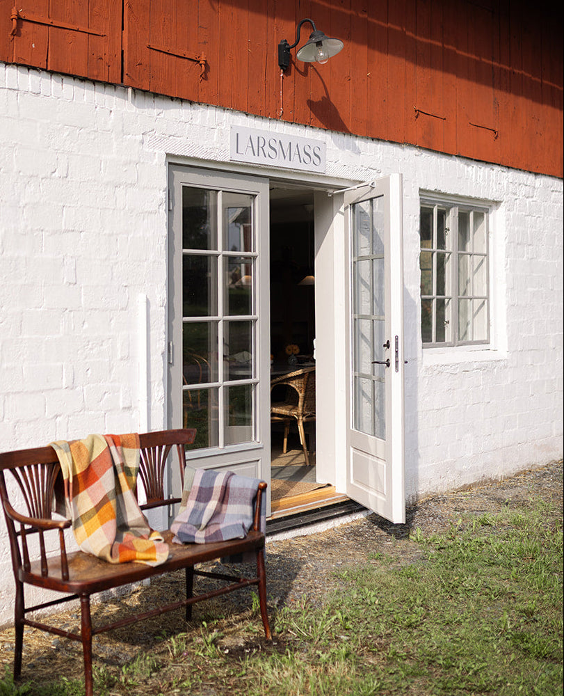 It all starts with the fine wool sheep, on our own farm and on other small farms around Sweden. The sheep are sheared and the wool is washed, carded and spun into yarn at a local spinning mill. In the studio at Larsmass, the yarn is then dyed with environmentally friendly pigments. The yarn is mounted on the loom and the weaving by hand begins. When the raw fabric is ready, it is steamed and brushed by hand, so that the unique softness and luster of the fine wool is highlighted. The last thing we do is hem the edges. Our blankets are made to survive both trends and frequent use. At Larsmass, we keep Swedish weaving traditions alive. We make timeless blankets from Swedish raw materials for those who share our view that quality takes time.