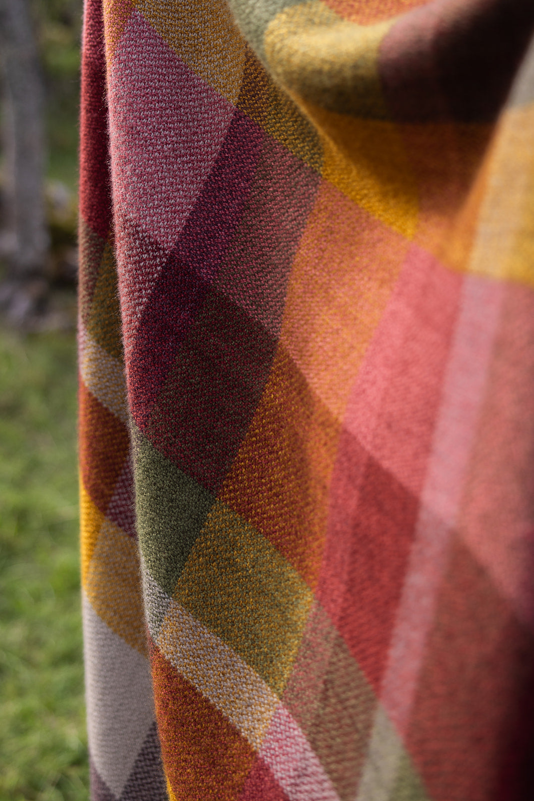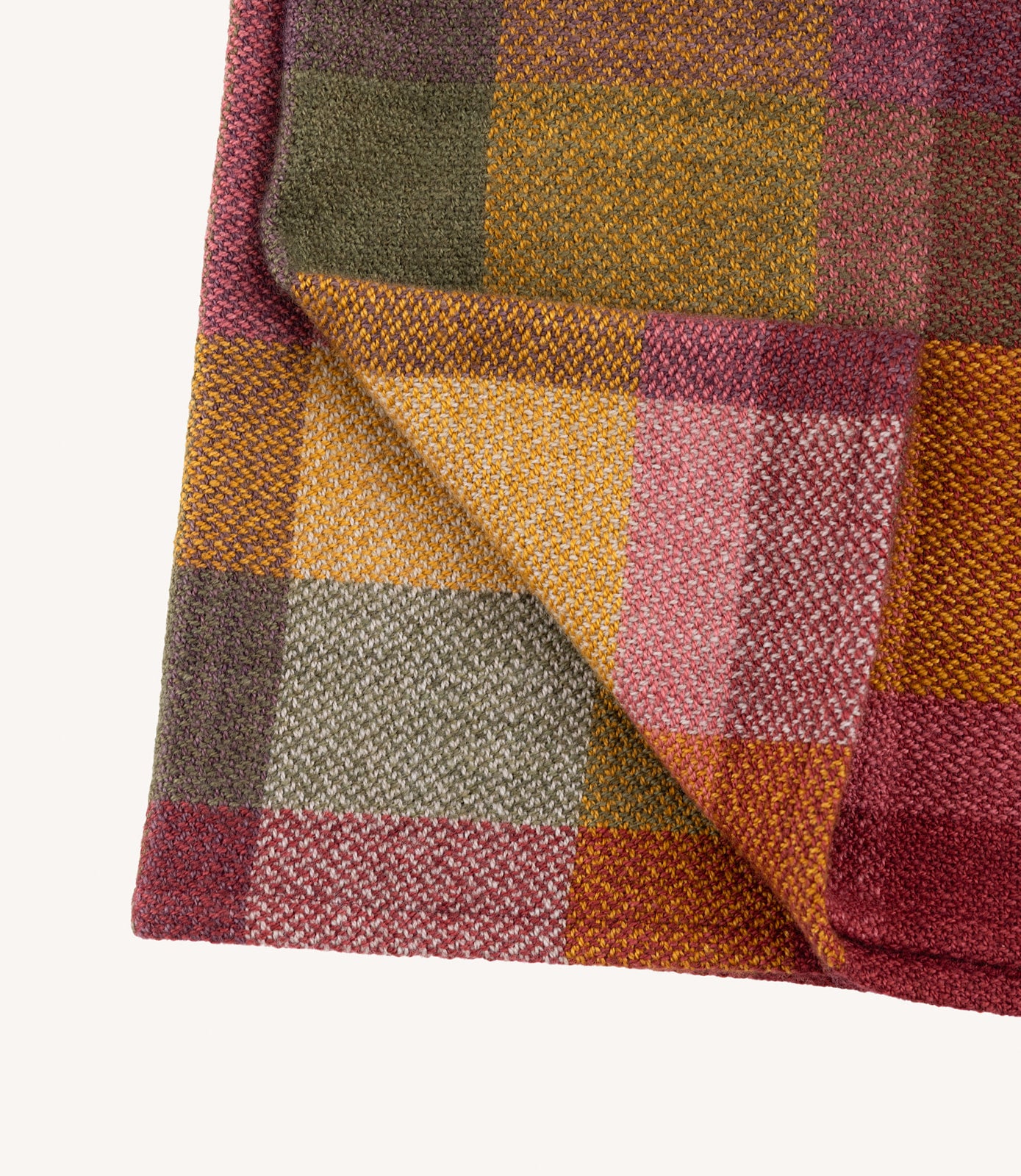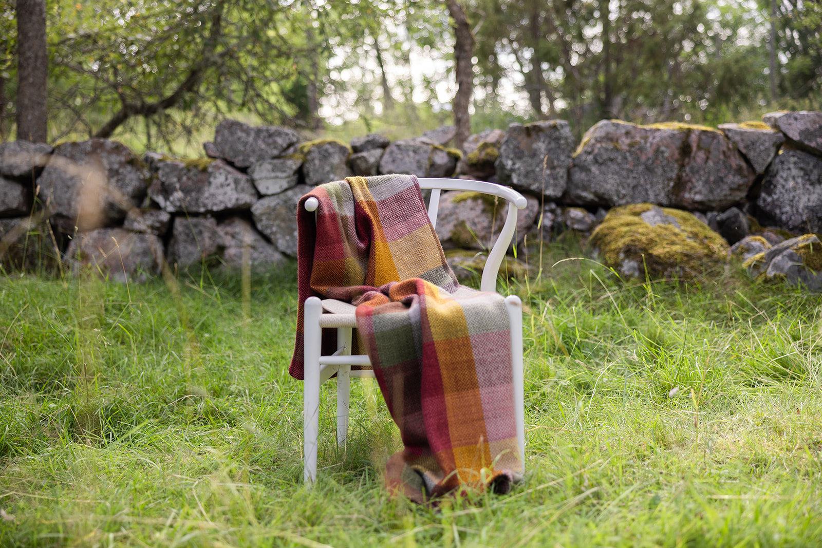 Tillverkning: Ullen har spunnits till garn lokalt på Rodens Ullbruk för att sedan färgas på gården. Efter det vävs plädarna för hand i vävstolar och slutligen ångas, fållas och borstas försiktigt.