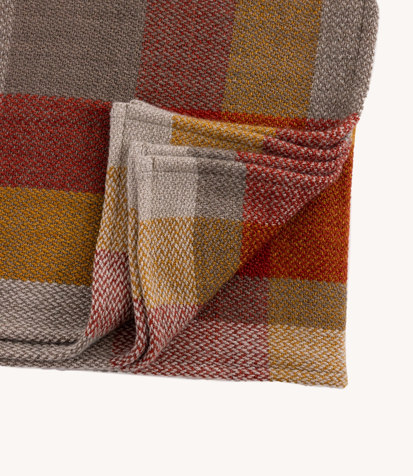 Tillverkning: Ullen har spunnits till garn lokalt på Rodens Ullbruk för att sedan färgas på gården. Efter det vävs plädarna för hand i vävstolar och slutligen ångas, fållas och borstas försiktigt.